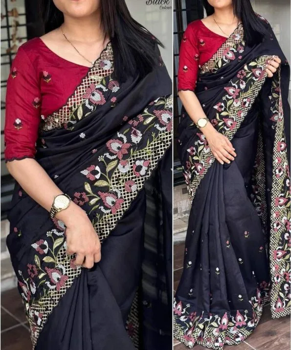 সাজসজ্জা শাড়ির সৌন্দর্যকে আরও বাড়িয়ে তোলে।