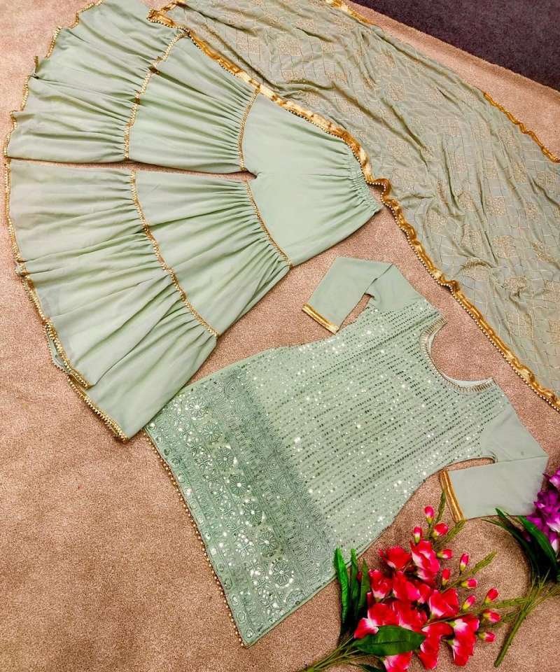 Top Fabric: Faux Georgette With Heavy Embroidery 5mm Sequence Work With Sleeve
