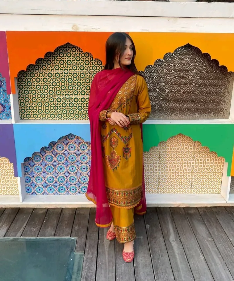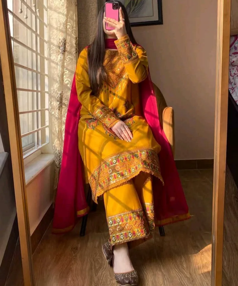 ওড়না ও সেলোয়ার: সাথে থাকছে ম্যাচিং করা শিফন ওড়না এবং কটন সেলোয়ার।